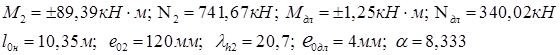М2 = ±89,32 кН×м; N2 = 741,67 кН.