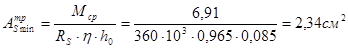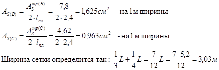 Арматура в сетке С2 определяется, как разница максимально-требуемой арматурой и той поперечной арматурой, которую подобрали в сетке С1. Для сетки С2 Аsтрmin= Аsтрmax - Аs (попер. ар-ры сетки С1) =3,13-2,515=0,615 см2.