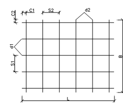 , то принимаем армирование рулонными сетками. По Аsтрmin подбираем рулонную сетку С1, которая раскладывается поперек второстепенных балок по всей длине перекрытия с перехлестом в поперечном направлении не менее 200 мм. Для крайнего пролета и крайней опоры укладываем дополнительную рулонную сетку С2. Ширина сетки С2 ≥1,25Lплиты.