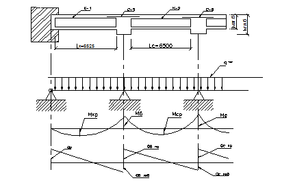 От действия положительного изгибающего момента второстепенная балка рассчитывается как элемент таврового профиля. От действия отрицательного изгибающего момента балка рассчитывается как прямоугольный элемент.