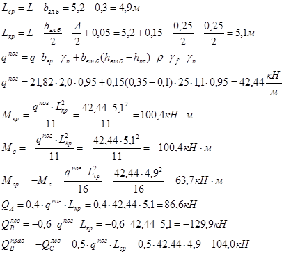 Расчет будем вести отдельно для крайнего и среднего пролетов: