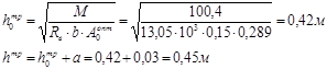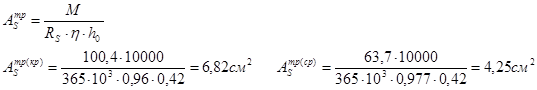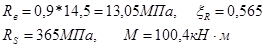 gв2 =0,9 RВ =13,05 Мпа, xR =0,565 RS =365 Мпа