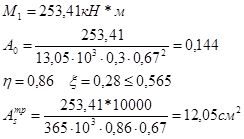 В результате подбора получаем арматуру А-III с As (2Æ25 + 2Æ20) =16,1см2