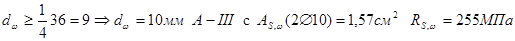 Условие выполняется Þ поставленной поперечной арматуры достаточно. Окончательно принимаем A-III c As,w (2Æ10) =1,57см2 с шагом 200 мм.