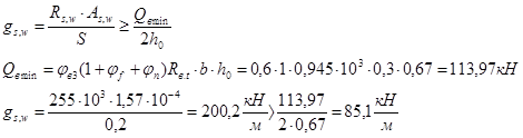 19) Определяем поперечную перерезывающую силу, воспринимаемую поперечной арматурой