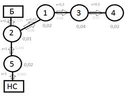 В результате сеть становится тупиковой (контуры в сети отсутствуют, n=0). Для нее просто задать начальное потокораспределение путем суммирования потребления воды, начиная с концевых узлов. На исключенных участках поток воды принимается равным нулю.