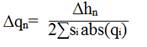 2. В каждом контуре вычисляется невязка ∆hn, определяющая меру несоответствия потоков воды в сети второму закону Кирхгофа,