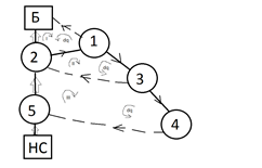 4. Для каждого контура вычисляется поправка ∆qn, положительное направление которой противоположно обходу контура по второму закону Кирхгофа