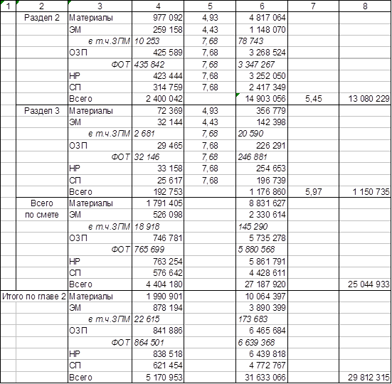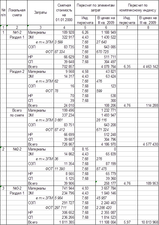 В смете №1-2 доля этих затрат составляет 26% и при пересчете в текущие цены по комплексным индексам оказалась на 9% больше.