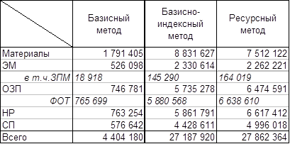 Таким образом, смета, посчитанная ресурсным методом дороже сметы, посчитанной базисно-индексным методом примерно на 2,5%.