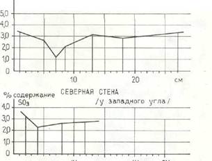 Одним из наиболее активных разрушающих агентов при увлажнении кладки являются минеральные соли. Источники засоления кладки весьма многообразны. Соли могут находиться в строительных материалах здания, поступать в результате подсоса минерализованных грунтовых вод; из атмосферы часто заносятся сернистые соединения от дыма и копоти котельных. Источником засоления являются также материалы, используемые в реставрации и при ремонтах: известь, камень, цемент, антисептики. Суть разрушения солями заключается в том, что вследствие капиллярного движения влаги создается приток минерализованной воды из толщи камня к поверхности кладки. В результате испарения воды происходит обогащение поверхностных слоев камня солями и при их кристаллизации начинается разрушение кладки. Особенно интенсивное разрушение возникает в местах, не подверженных естественному промыванию дождевой водой или систематически не очищаемых. На процесс разрушения сильное влияние может оказывать состав солей. Сульфаты натрия или магния, например, связывают при кристаллизации значительное количество воды в кристаллогидрат. Образующиеся при этом кристаллы большой величины способствуют превращению поверхностных слоев камня в мучнистую осыпь, а при наличии настенной живописи вызывает отрыв и разрушения левкасного слоя с фреской. При этом следует учитывать, что основная борьба с выходом солей к поверхности кладки — это устойчивое и постепенное снижение влажности кладки. Чем быстрее влага испаряется с поверхности камня, тем скорее он будет разрушаться, тем глубже пойдет процесс разрушения, конечно при прочих равных условиях —засолении камня, степени влажности и температуры. Следовательно, повышенная вентиляция памятника снаружи и внутри может способствовать более быстрому разрушению белого камня или кирпича, насыщенного сернокислыми солями. Это, на первый взгляд, парадоксальное положение подтверждается исследованиями лаборатории ВПНРК, проводившимися в основном на Дмитриевском соборе во Владимире в 1969—1971 гг.