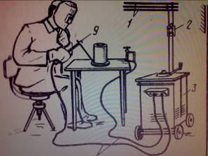 1 - сеть электропитания, 2 - рубильник, 3 - источник питания дуги, 4 - сварочные провода, 9 - горелка или электрододержатель.