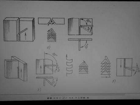 а - стыковые швы со скосом кромок, б - угловые швы, в - сварка в направлении сверху вниз