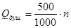 Душем пользуются в первый час последующей смены в течении 45 минут из расчета 500 литров воды на 1 душевую сетку, следовательно расход душевых в смену: