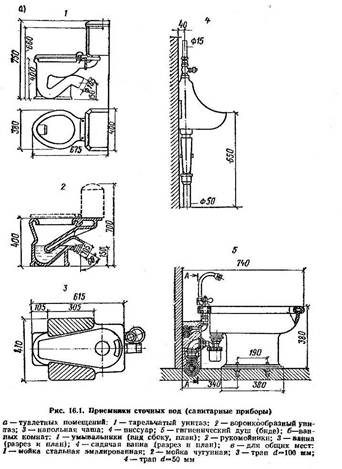 Рассмотрим кратко некоторые виды приемников сточных вод, особенности их установки и применения (рис. 16.1).