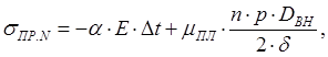 где σкц – кольцевые напряжения от расчётного внутреннего давления, МПа.