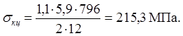 Кольцевые напряжения σкц, МПа определяем по формуле