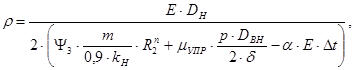 Расчётная толщина стенки с учётом влияния осевых сжимающих напряжений определяется по зависимости