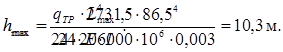Высота подъёма трубопровода hmax, м на расстоянии Lmax от точки выхода скважины определяется по формуле: