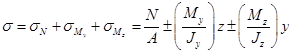 , то нормальное напряжение в произвольной точке равно сумме напряжений