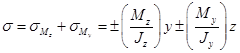 66. Как определяются напряжения при косом изгибе ?