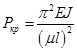 Формулу Эйлера для определения критической силы при различных закреплениях концов стержня можно записать как
