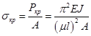 Критическое сжимающее напряжение, т.е. такое, при котором прямолинейная форма равновесия стержня становится неустойчивой, определится по формуле