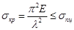 в материале, вызванное критической силой , не превышает предела пропорциональности, т.е.