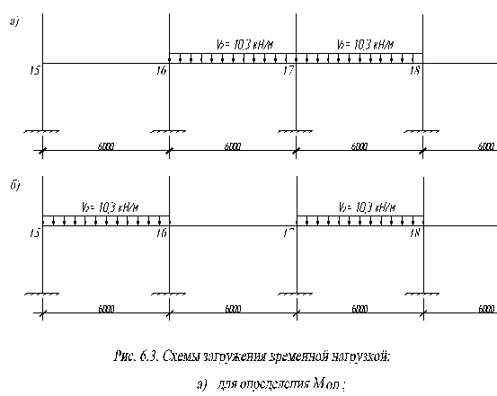 Для определения изгибающих моментов от временной нагрузки располагаем последнюю через один пролет для получения максимального пролетного момента и в двух смежных пролетах для получения максимального пролетного момента.