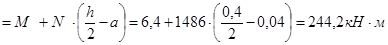 Находим значения моментов в сечении относительно оси, проходящей через центр тяжести наименее (сжатой) растянутой арматуры.