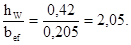 где а=0,5(L-h)=0,5(0,65-0,448)=0,101 м; b=bf=0,42 м.