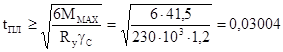 tПЛ= 25 мм (tПЛ=20…25 мм). Требуемая толщина парных ребер из условия работы на смятие: