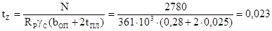- расчетное сопротивление смятию торцевой поверхности; bОП=0,28 м – ширина опорного ребра балки.