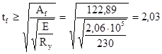 Толщина полки из условия обеспечения ее местной устойчивости: