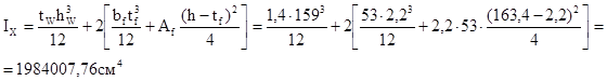 If.тр=Iтр.max-Iw=2065694,6-602951,85=1462742,75 см4;