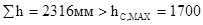 Ранее была найдена наибольшая строительная высота перекрытия hC,MAX= 1700 мм.