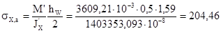 - нормальные напряжения в стенке под полкой: