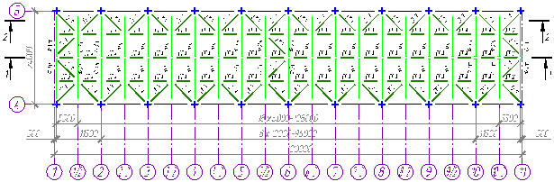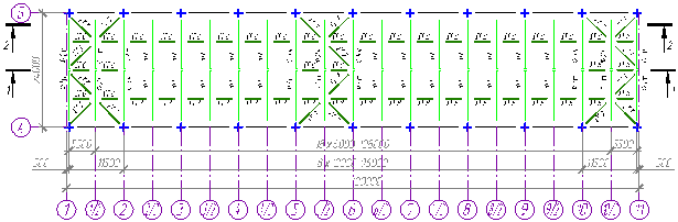 Рисунок 3. Схема горизонтальных связей по верхним поясам ферм