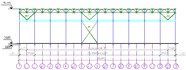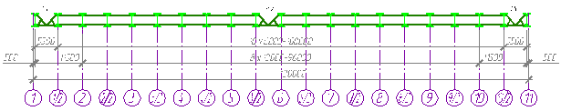 Рисунок 1. Схема расположения колонн и стропильных конструкций