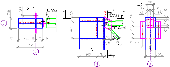 Высоту фасонки определим из условия ее равнопрочности с вертикальными полками уголков: