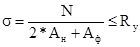 σ=-620.07/(2*1150+3264)=111.4 МПа < 240 МПа.