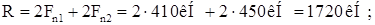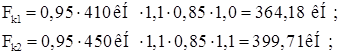 Fn1= 410 кН; Fn2 = 450 кН – нормативное вертикальное давление колеса крана (см. стр. 530 [2]);