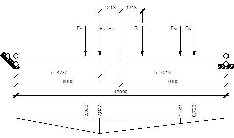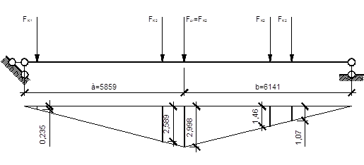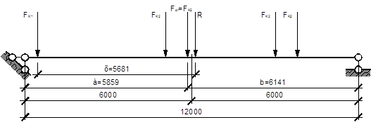 Рис. 11. Расчетная схема загружения подкрановой балки нормативной вертикальной нагрузкой