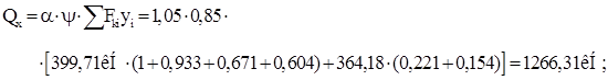 Максимальная поперечная перерезывающая сила от вертикальных нагрузок: