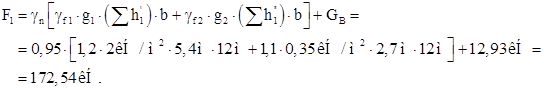 g1=2 кН/м2 – поверхностная масса навесных стен;