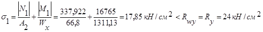 Проверяем прочность стыкового сварного шва Ш1 при действии 2-х комбинаций усилий.