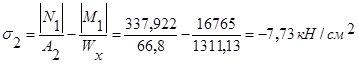 – знак минус в данном случае показывает, что в точке 1 действует усилие растяжения. Следовательно оно не должно превышать