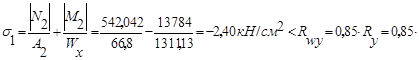 Для расчета шва Ш2 принимаем комбинацию усилий с положительным моментом, включающую в себя крановую нагрузку.