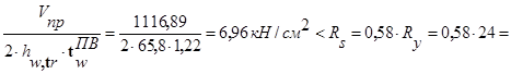 Проверяем прочность стенки подкрановой ветви на срез: