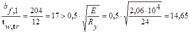 т.е. условие не выполняется, следовательно увеличиваем толщину полки до 14 мм.